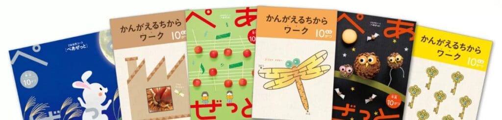- Z会:かんがえるちからワーク(一人で取り組む自習用ワーク)、ワークシート(提出課題)、ぺあぜっと(体験型教材)、ぺあぜっとシート(提出課題)、いっしょにおでかけブック(絵本)、おとでたのしむ えいごパーク(デジタル教材)、とっておきプラス(体験型教材)、かんがえるトレイン(デジタル教材)など